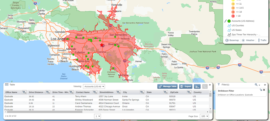 This will navigate to the pin dataset in your table filtered to your selected drive time buffer.